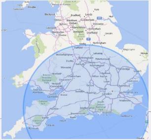 The MSP Incentive zone is approx. 140 miles.